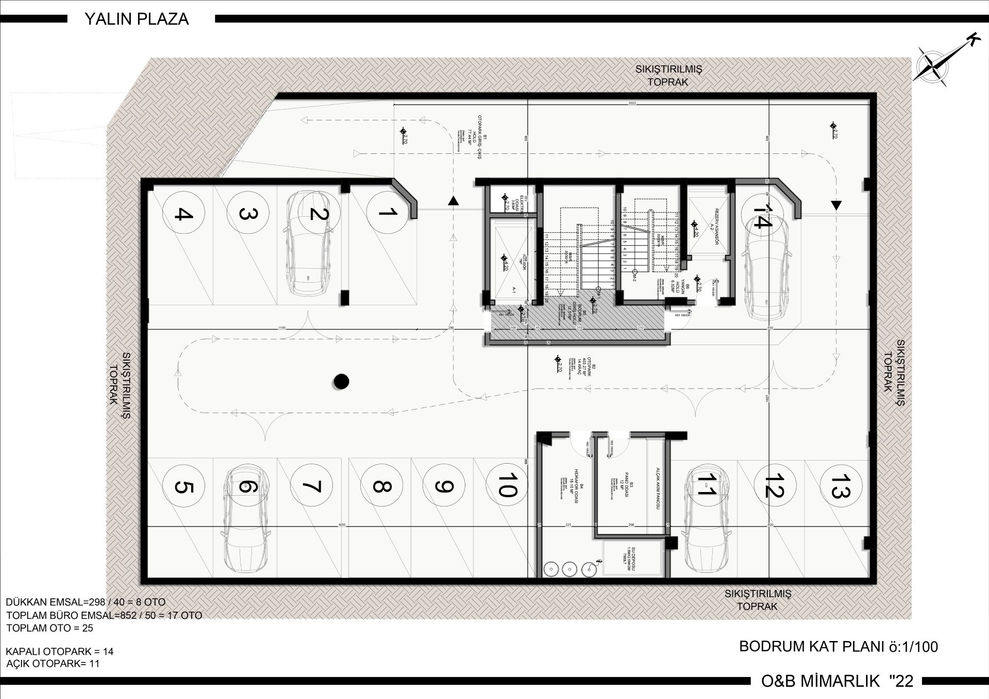 The office building designed by O&B Architecture is located in Bahçeyaka Neighborhood, Döşemealtı district of Antalya, on parcel 6 of block 456. The structure consists of 1 basement floor, 1 ground floor, 3 typical floors, and 1 roof floor, aiming to meet the demand for workspaces due to the increasing population density in the district.