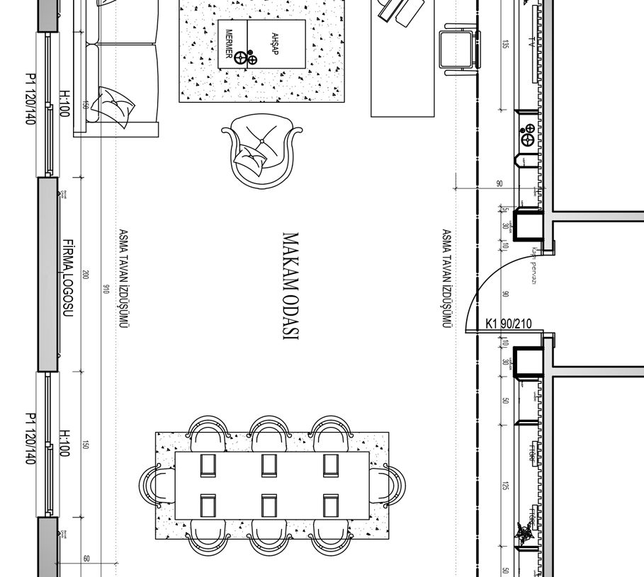 The interior design project, co-designed with architect İbrahim Halil Yel, was created for Mr. Yaşar, the owner of Okumuş Company in Antalya. Before starting the design, the client’s needs were identified, and measurements of the existing space were taken. The client expressed a desire to make the existing space more functional, specifically requiring storage, meeting, and working areas, and requested that the design reflect these requirements.
